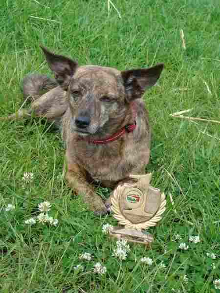 Wedelwuff, freu, wau!!! Ich habe schon schöne tolle Erlebnisse mit meiner Straßenclique gehabt. Davon ein anderes mal mehr. Links auf dem Bild seht ihr mit Siegerurkunde-gewonnen beim Flyball. Ja, eine echte Rennsumse - unsere Kleine!