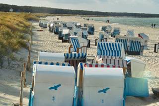 Natürlich waren wir in Prerow am Strand. Sand und Meer soweit das Auge reicht. Wir Hunde haben am Strand ein Wettrennen veranstaltet und anschließend ein Sandbad genommen. Auf dem Rückweg haben wir am Strand, direkt an der Wasserkante entlang, Frauchen bei der Bernsteinsuche geholfen. Da zeigt sie doch auf die am Strand gespülten Algen und sagt immer zu uns: "Sucht schön das Leckerli." Vorher hatte sie einige dieser Algenansammlungen mit Trockenfutter bestückt. Diese Suchaktionen haben echt Spaß gemacht, da haben wir auch „Straußeneier“ gefunden. Das sind in Wirklichkeit die getrockneten Rindfleischbrocken und Knochi aus der Leckerlitasche, doch Frauchen nannte sie auch schon mal auch „Kranichstückchen“.